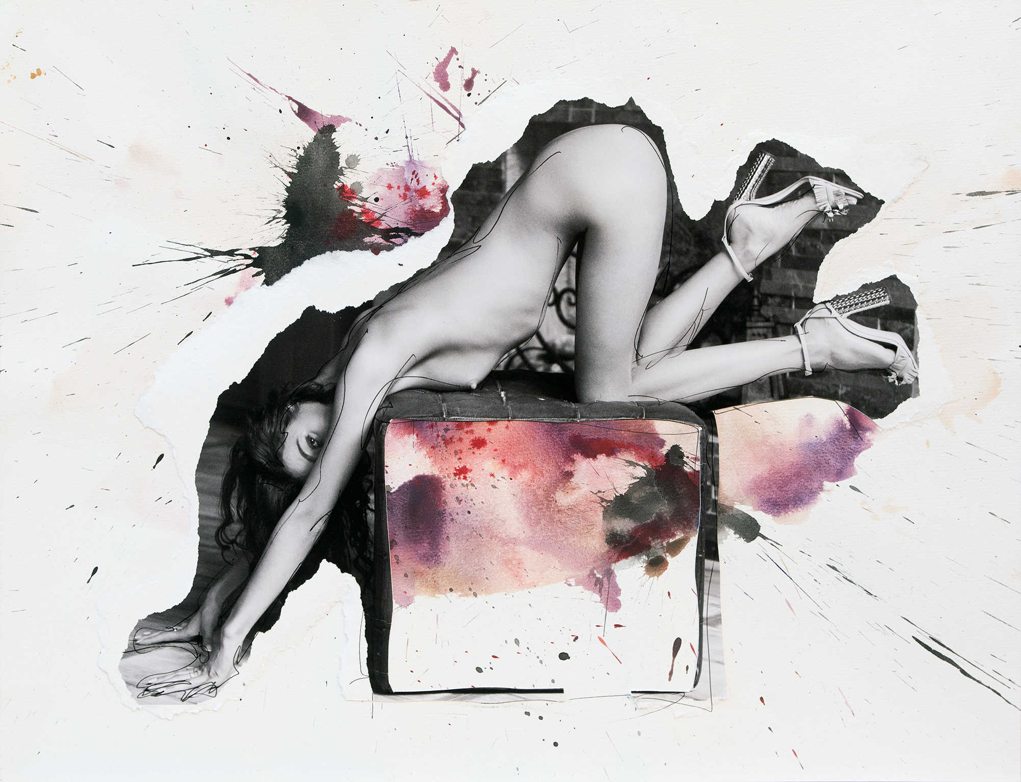 • Tusche, Aquarell, gedruckte Fotografie, Collage auf Papier