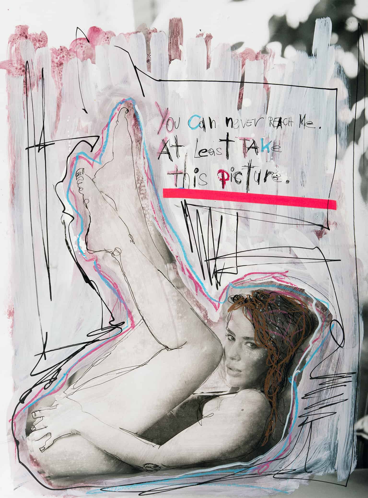 • Lackstift, Ölkreide, Deckweiss, Textilklebeband, Tusche, original Fotografie auf Hahnemühle FineArt Baryta, Collage
